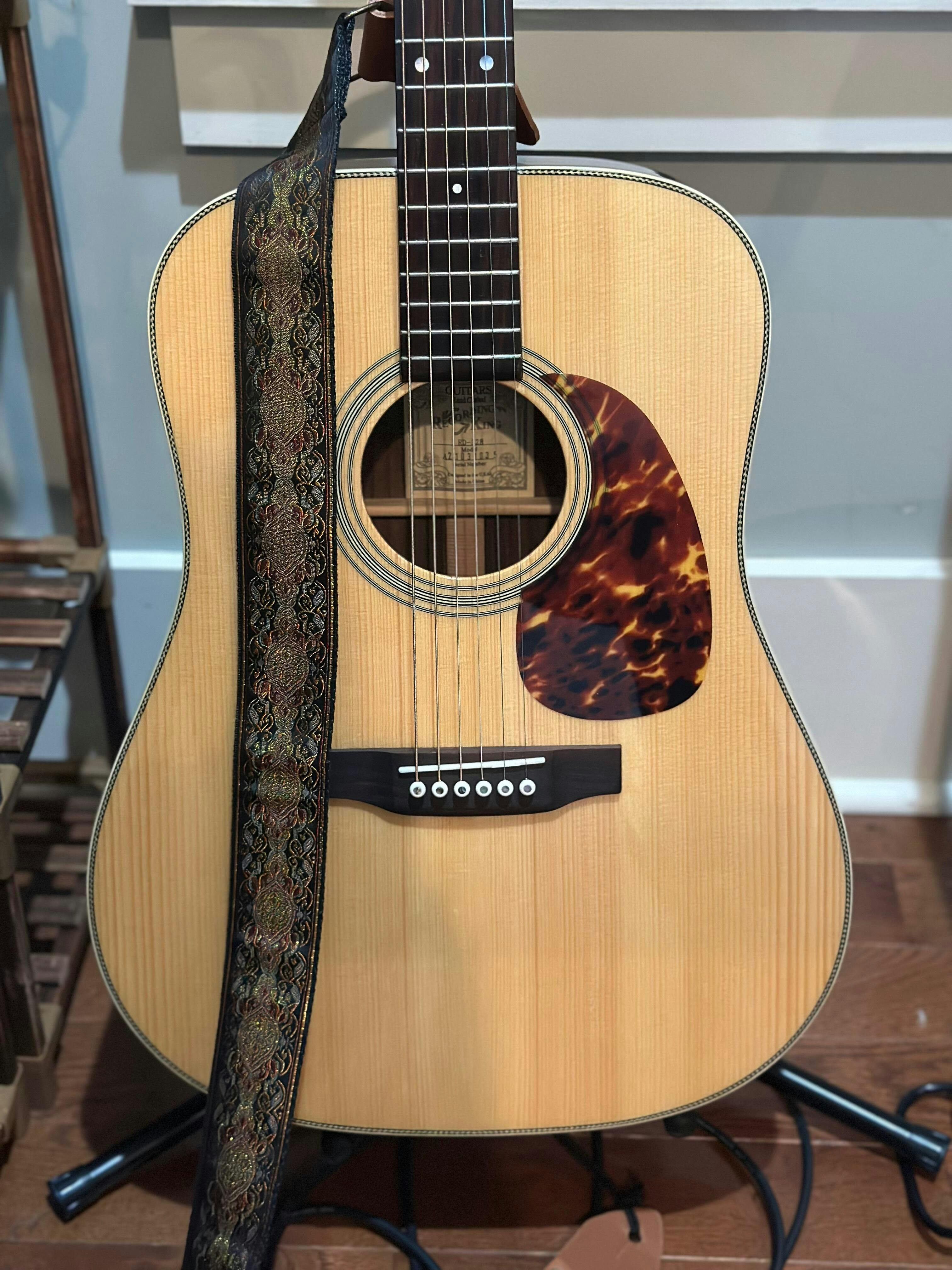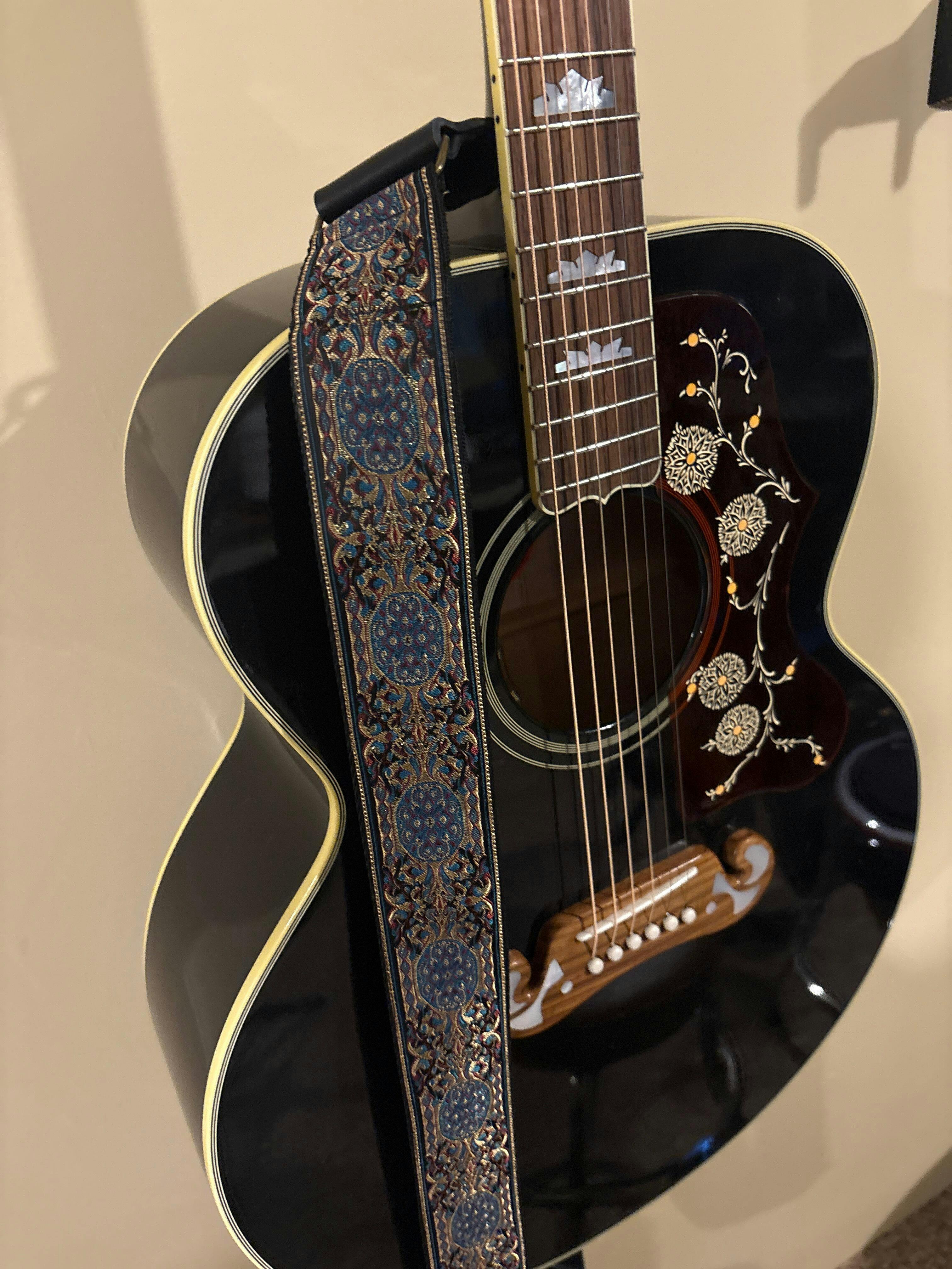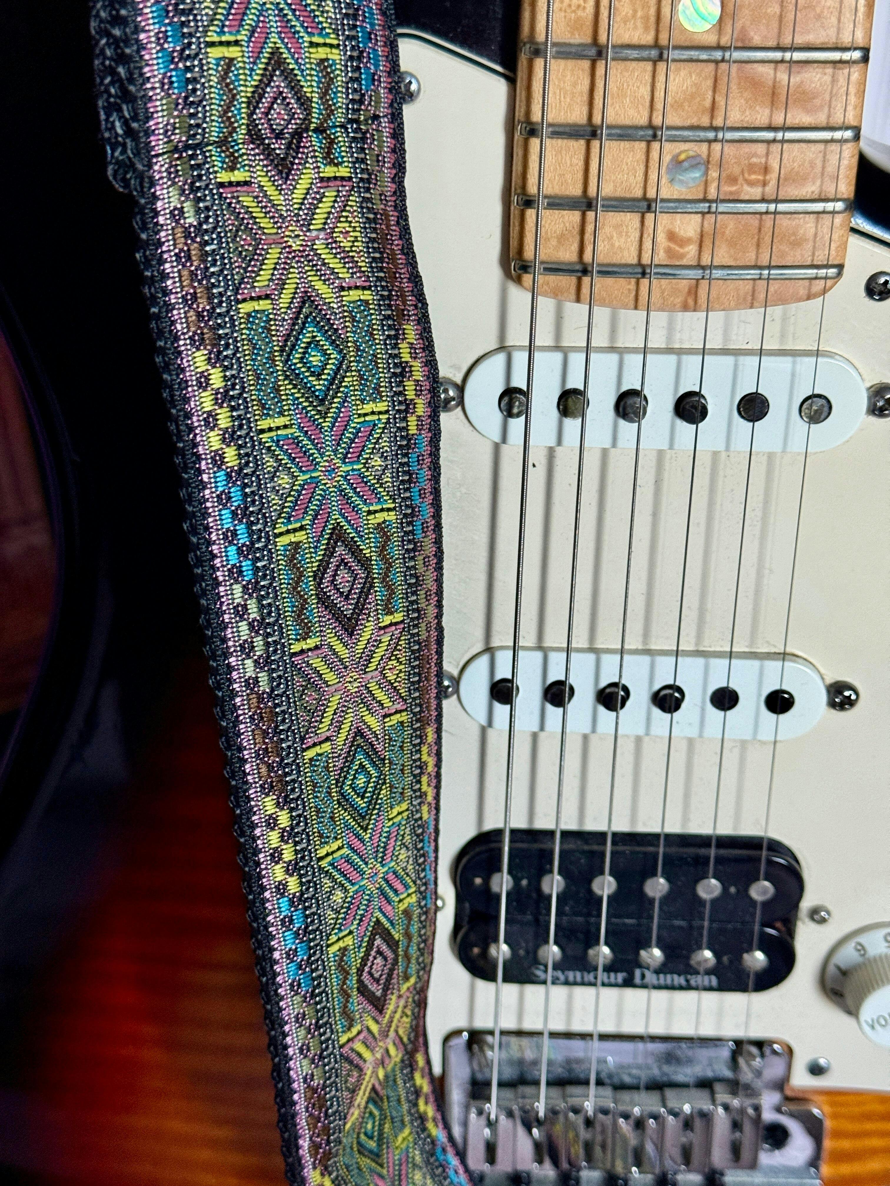 Such a lovely guitar strap, it’s absolutely perfect for my new Gibson SG, the intricate detail and colors are just fantastic, thank you very much.