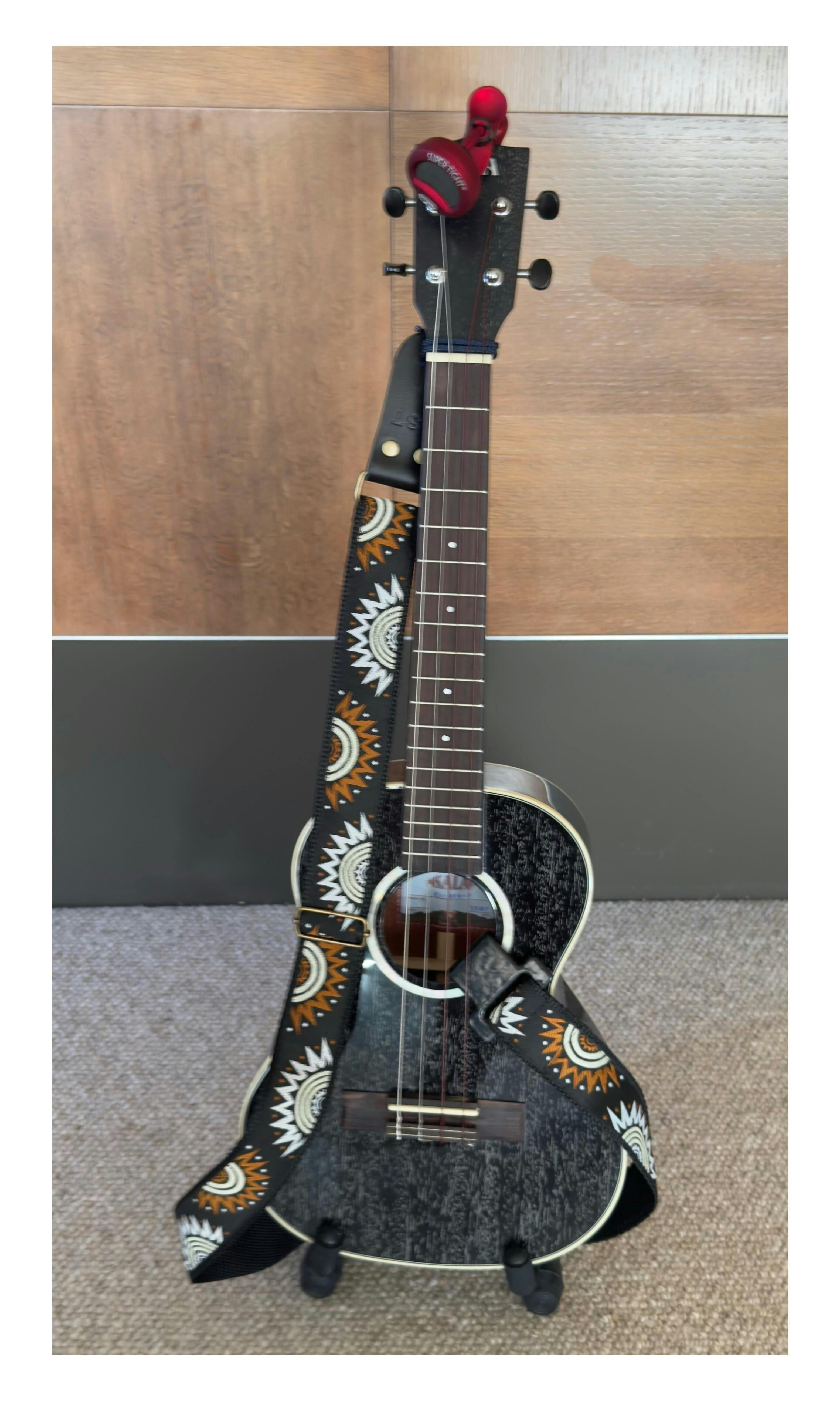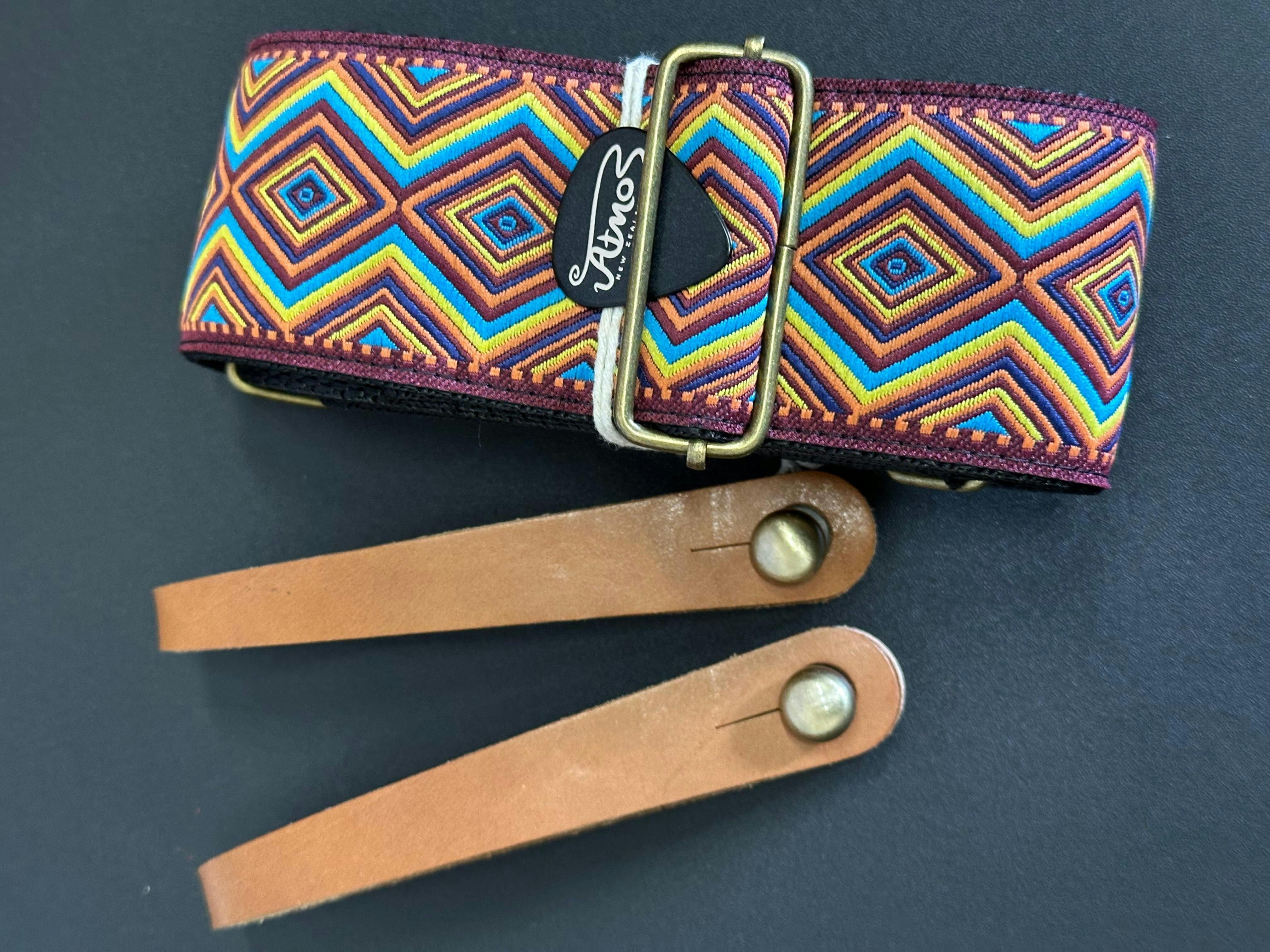 Great strap for my ukulele - nice colour scheme and really well made in the tradition of Atmos straps. .The colours compliment my uke nicely. Great service from Alex and Emma who made the sound hole hook available as a set-up option. I added some black felt to the inside of the hook to help protect the instrument. Thanks for a great strap Atmos team!