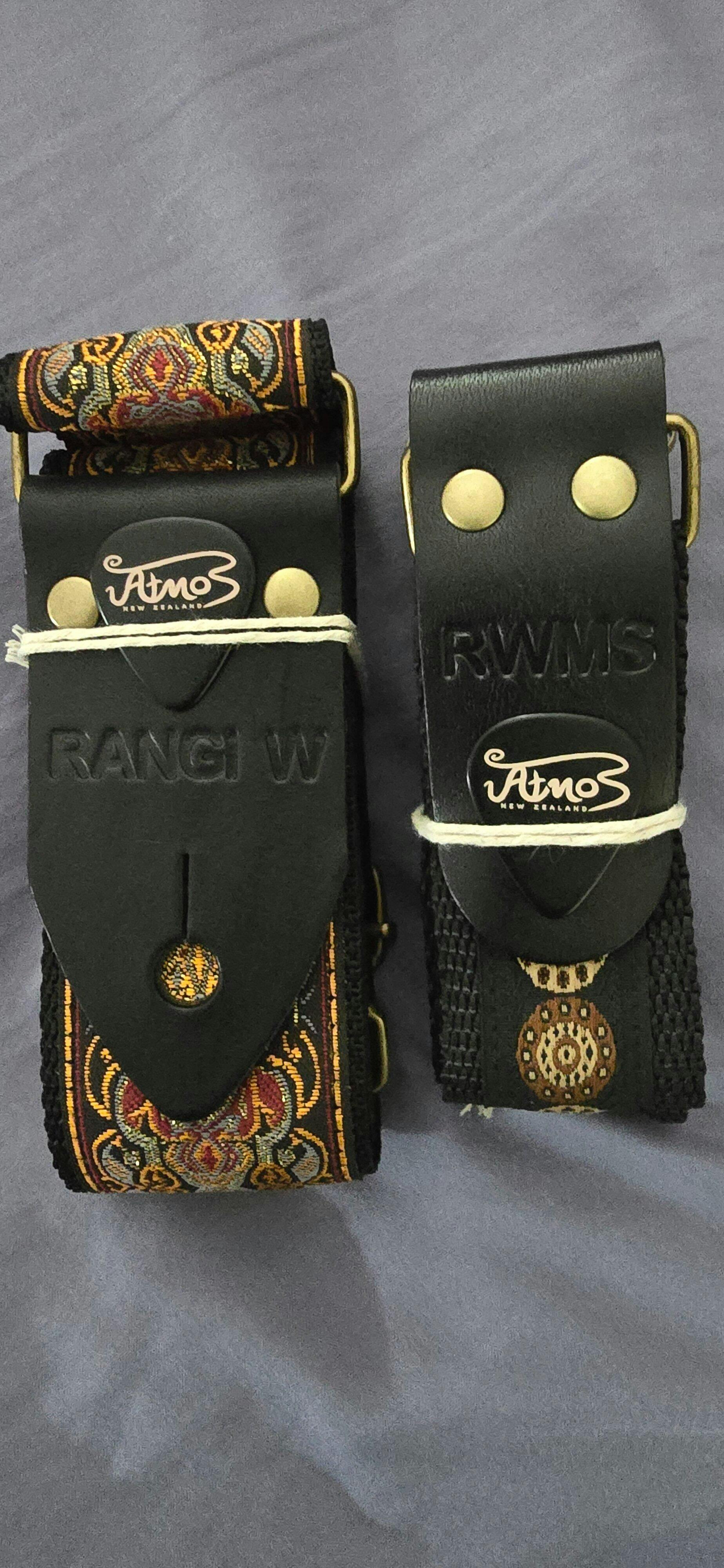 "I am absolutely loving my Atmos guitar and ukulele straps! The 'Gold Finger' guitar strap has beautiful colors and is incredibly well-made. Both the guitar and Eclipse ukulele straps are comfortable, high-quality, and look beautiful. The craftsmanship is top-notch, and I love the personal touch of having my initials embossed. Plus, the delivery was timely. I loved the Eclipse ukulele strap so much I brought my partner one! I highly recommend them!"